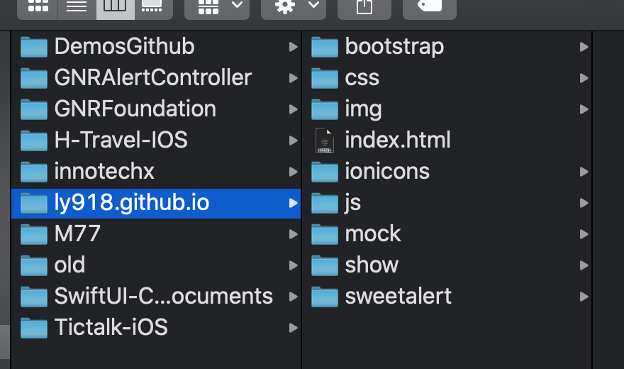 将下载的模板解压,并将目录中的文件拷贝到本地仓库`ly918.github.io`文件夹中,如下图所示:
