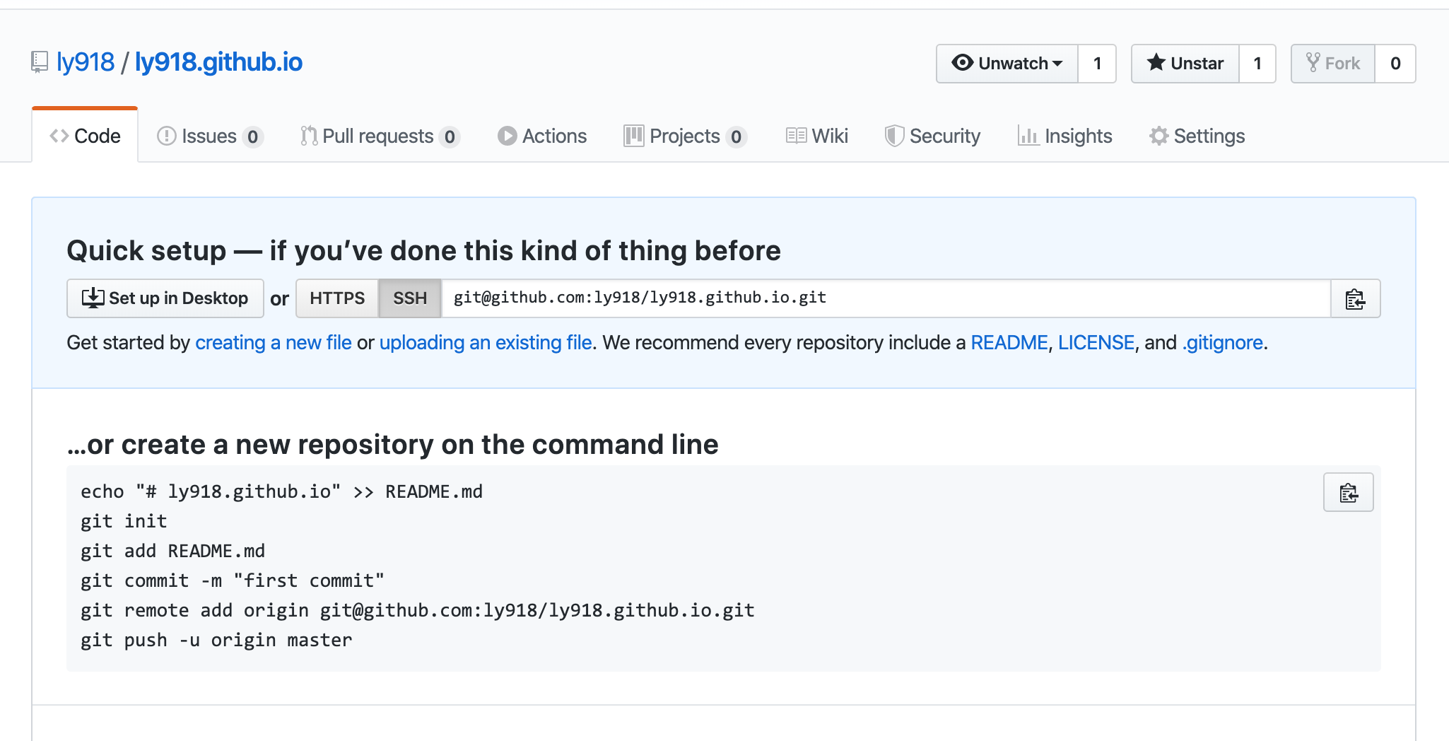 现在该仓库并没有任何内容,在浏览器输入https://ly918.github.io/,你会能看到404。