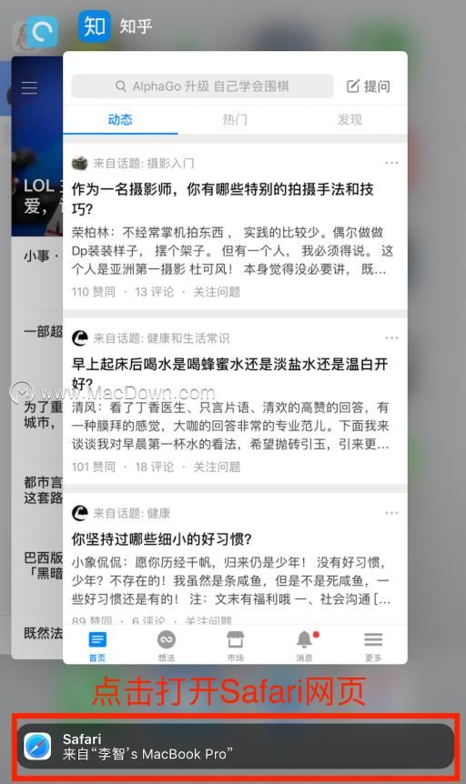 - 点击这个提示就能在iPhone/iPad上直接打开Safari,并且调出你在Mac上已经打开的网页。这样你在家里打开的网页,如果出去了在路上照样能够浏览。