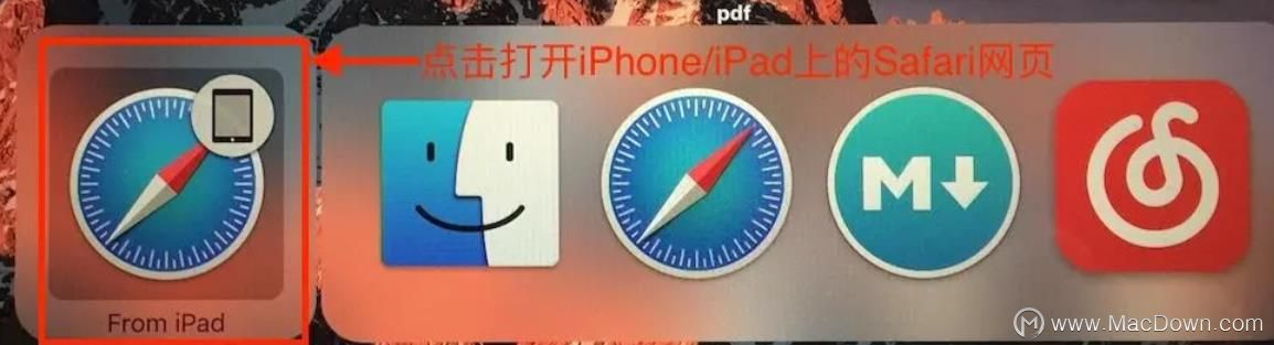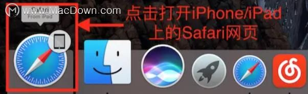 - 在Mac底部Dock的最左边,你会发现一个Safari的图标,这个图标的右上角有一个手机的样式,点击这个Safari图标就能打开iPhone/iPad上的网页;