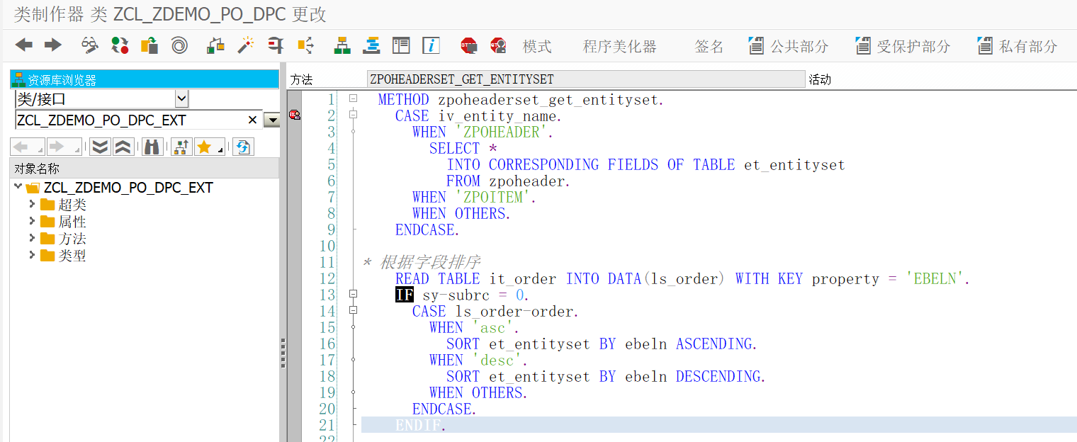 描述如何实现http://<server>:<port>/sap/opu/odata/sap/<service_name>/XXSet?$orderby= 排序字段名 desc/asc 实现前debug看一下前台如何传参的: 发现IT_ORDER有如下值: 我们根据传参实现排序即可 我们来对比看结果 排序前: 排序后: 来源:CSDN作者:wolf988链接:https://blog.csdn.net/yang362046076/article/details/103492674 标签 orderby
