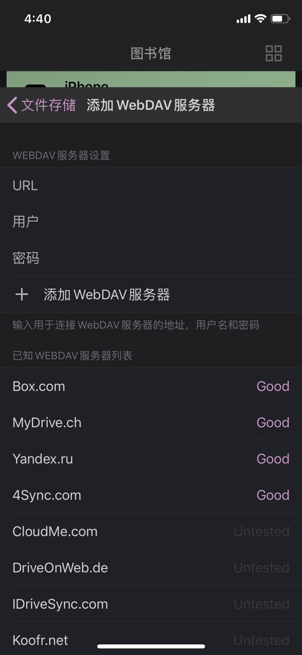 用sync网上找到了一些电子书;想把数据(kindle azw3格式)发送到手机上阅读;就搜到了KyBook3这个APP;看到可以通过webdav来添加