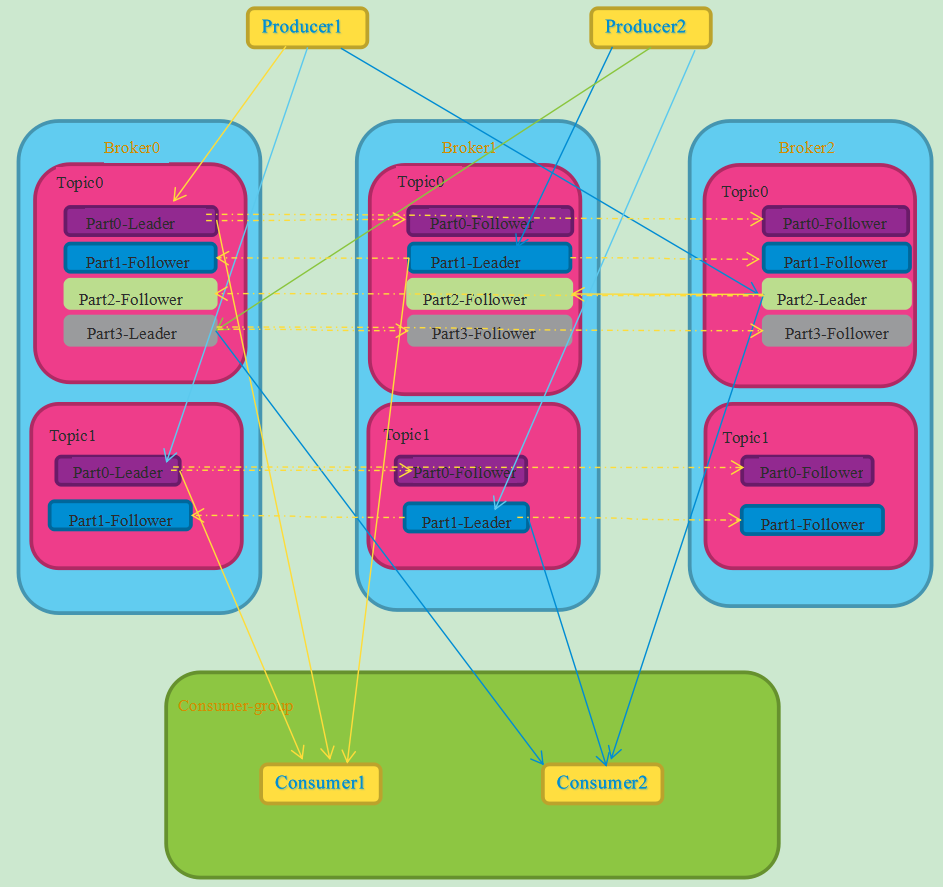 消费者可以从broker中读取数据。消费者可以消费多个topic中的数据。