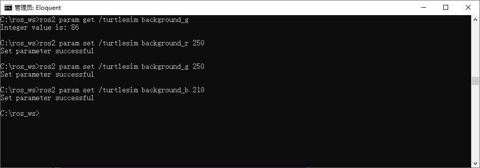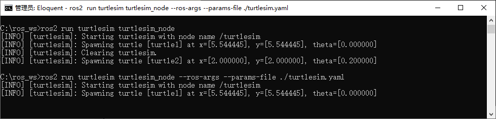 这是一直以来启动turtlesim的同一命令,带有添加标志--ros-args和--params-file,后跟要加载的文件。