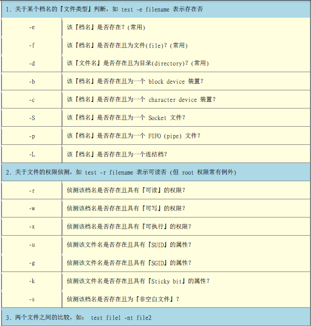 三、上述都是系统的讲述了些编写shell script的方法,下面主要介绍些常用的知识点: