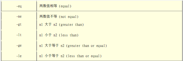 -ge 大于等于 (greater than or equal)