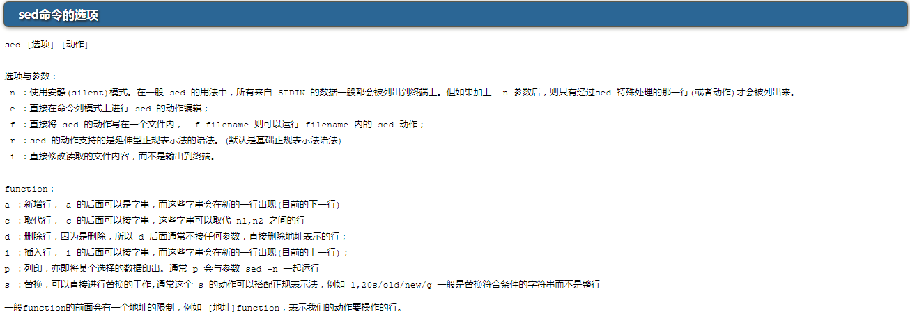sed命令是一个面向字符流的非交互式编辑器,也就是说sed不允许用户与它进行交互操作。sed是按行来处理文本内容的。在shell中,使用sed来批量修改文本内容是非常方便的。