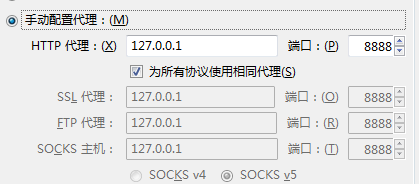 (1)首先,看看火狐浏览器的配置,是不是下方“为所有协议使用相同代理”的地方没有勾选上,如果是,请勾选上。