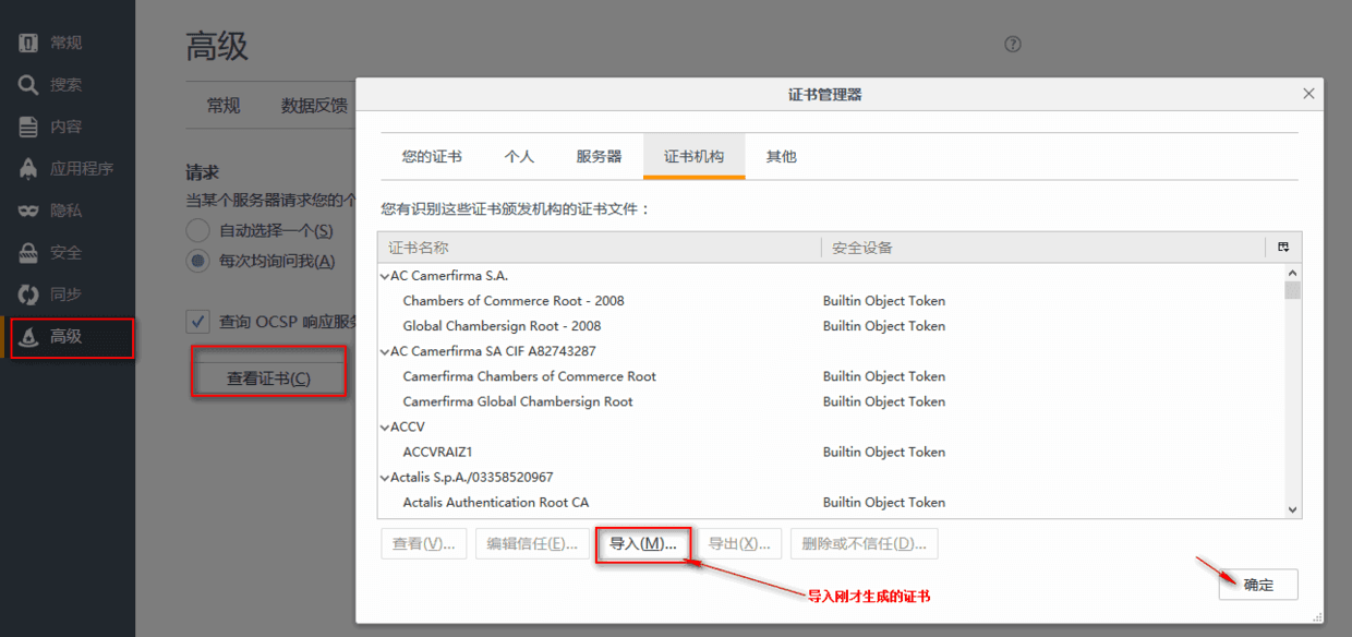 将证书安装到浏览器