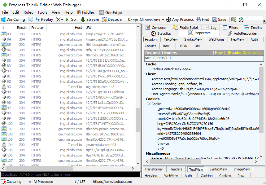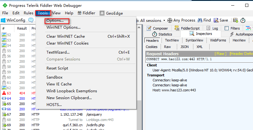 (5)有了证书之后,请重启Fiddler(关掉再开),重启之后,访问https的网站,比如淘宝首页,有可能成功了,但你也有可能会发现如下错误: