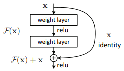 motivation:堆叠深层网络,在用多个非线性层逼近恒等映射时可能会遇到困难。所以直接加一个 skipconnection,这个跳接就是恒等变换(可以这么想,你网络不是学习不到恒等变换吗,那我就强制给你加一个恒等变换咯)。