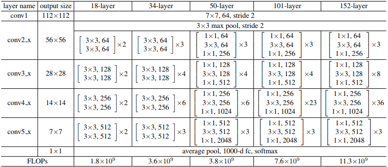 Table 1. Architectures for ImageNet. Building blocks are shown in brackets (see also Fig. 5), with the numbers of blocks stacked. Downsampling is performed by conv3 1, conv4 1, and conv5 1 with a stride of 2