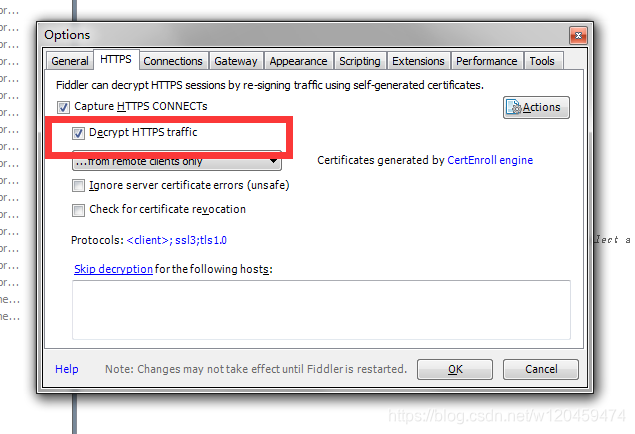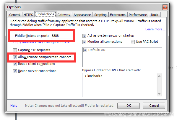 注:有两部分设置,分为fiddler设置和手机端设置,且配置完成后,使用时确保PC和手机连接同一WiFi