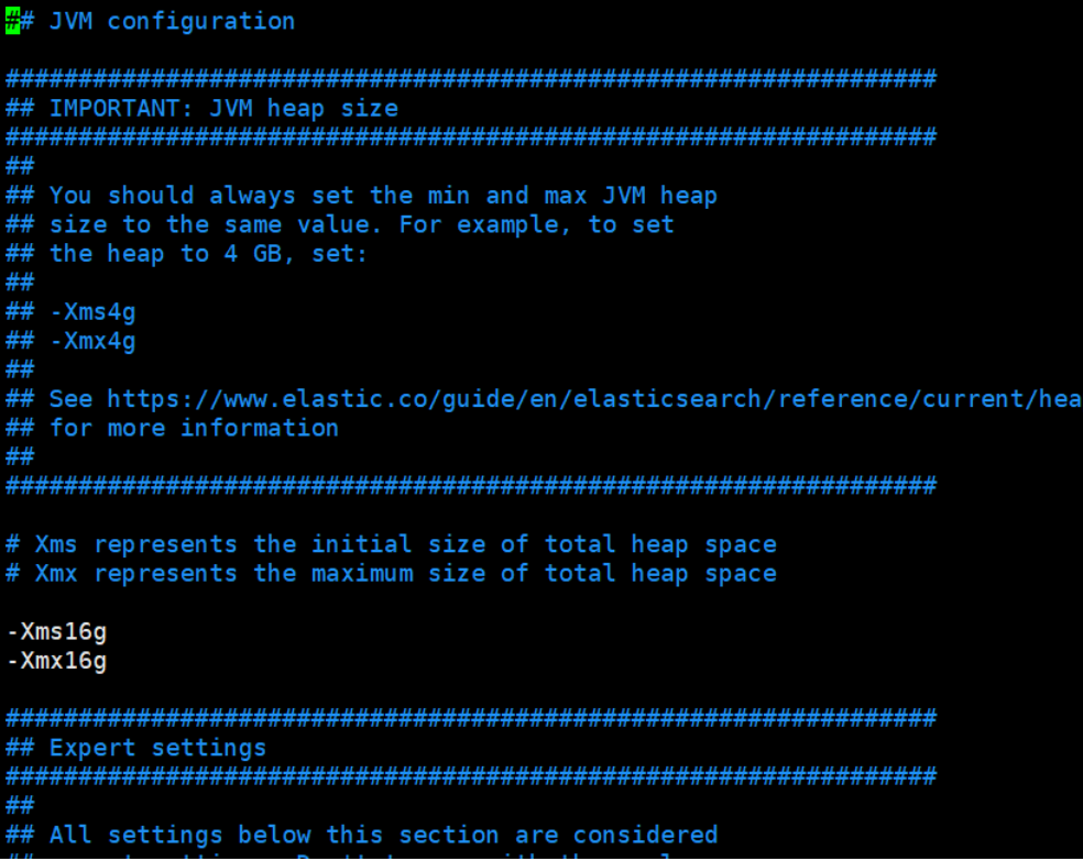 root@node01:/usr/local/es# vim config/jvm.options 调整JVM内存参数最大32G,一般为内存的一半