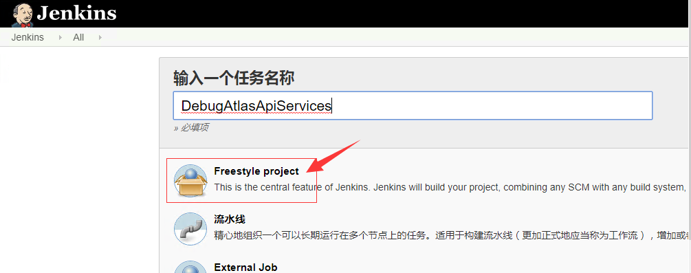 (2)、输入项目名称,并选择自由项目,并点击确定