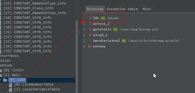 首先,看下,JVM调用几次 ldc 指令加载字符串到常量池中: