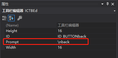 MFC 工具栏按钮浮窗提示 在前面的博客中有过如何添加工具栏,这里就不重复赘述了,今儿这个就是一个很小的技巧。 在资源视图中打开你要显示提示浮窗的ToolBar。 找到按钮,并且单击进入属性 在属性中找到Prompt选项,在后面的编辑框中添加\n后面跟你提示词,我的提示词是back. 效果 来源:CSDN作者:曲直向前链接:https://blog.csdn.net/wsq119/article/details/103496982 标签 工具栏 toolbar mfc 按钮