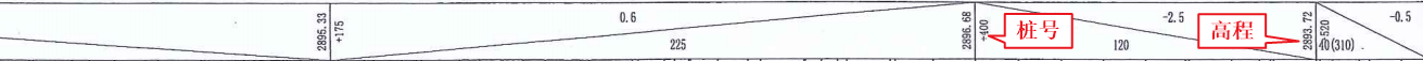 注意:文本文件中的桩号不能超出纵断面图的桩号,否则前一段不会绘出。出现超出部分则应按桩号、坡比计算出纵断面图起点的桩号与设计高程作为文件内容的第一行内容。