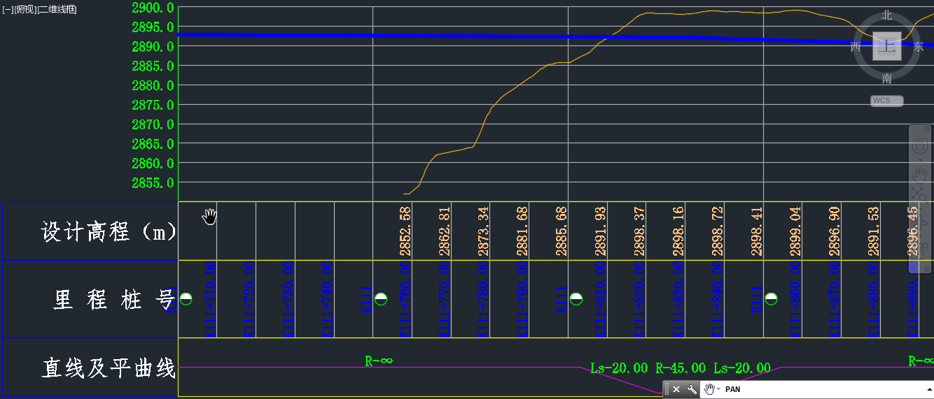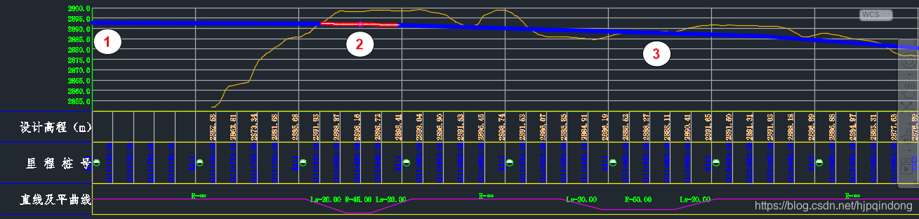 再根据文件绘制纵断面即可完成布局纵断面的折点绘图,再在折点上按竖曲线半径添加曲线即可。