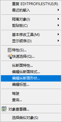 根据文件绘出的布局纵断面如上图中蓝线。再按竖曲线参数补绘曲线。选中断面线,在右键菜单中点击“编辑纵断面形状”打开纵断面图编辑工具栏: