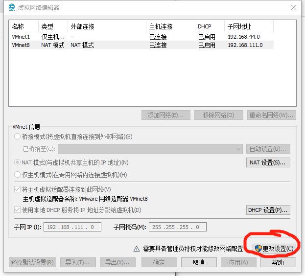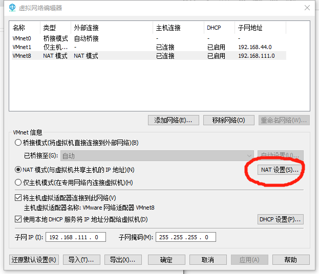 B: 网关不是 VMnet8 的 ip(因为是 nat 模式),ubuntu nat模式 网关的位置在 虚拟机 编辑 → 虚拟网络编辑器