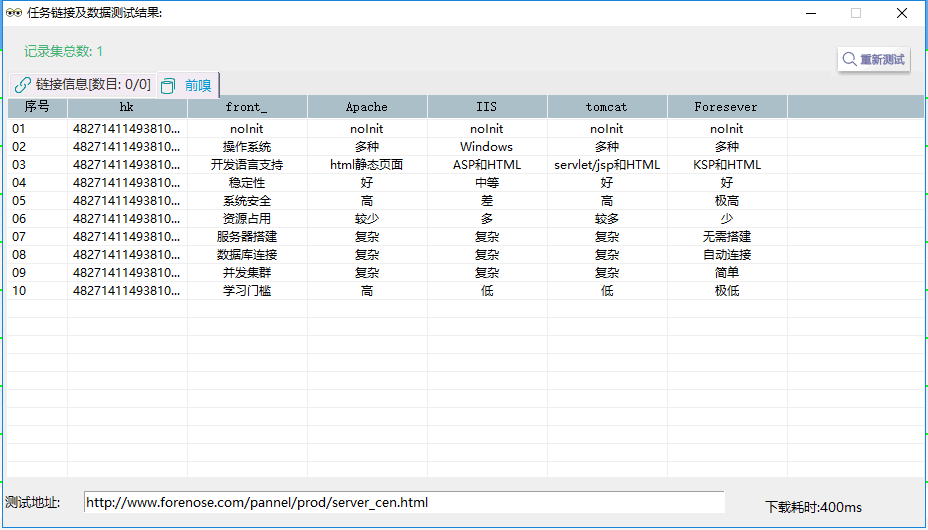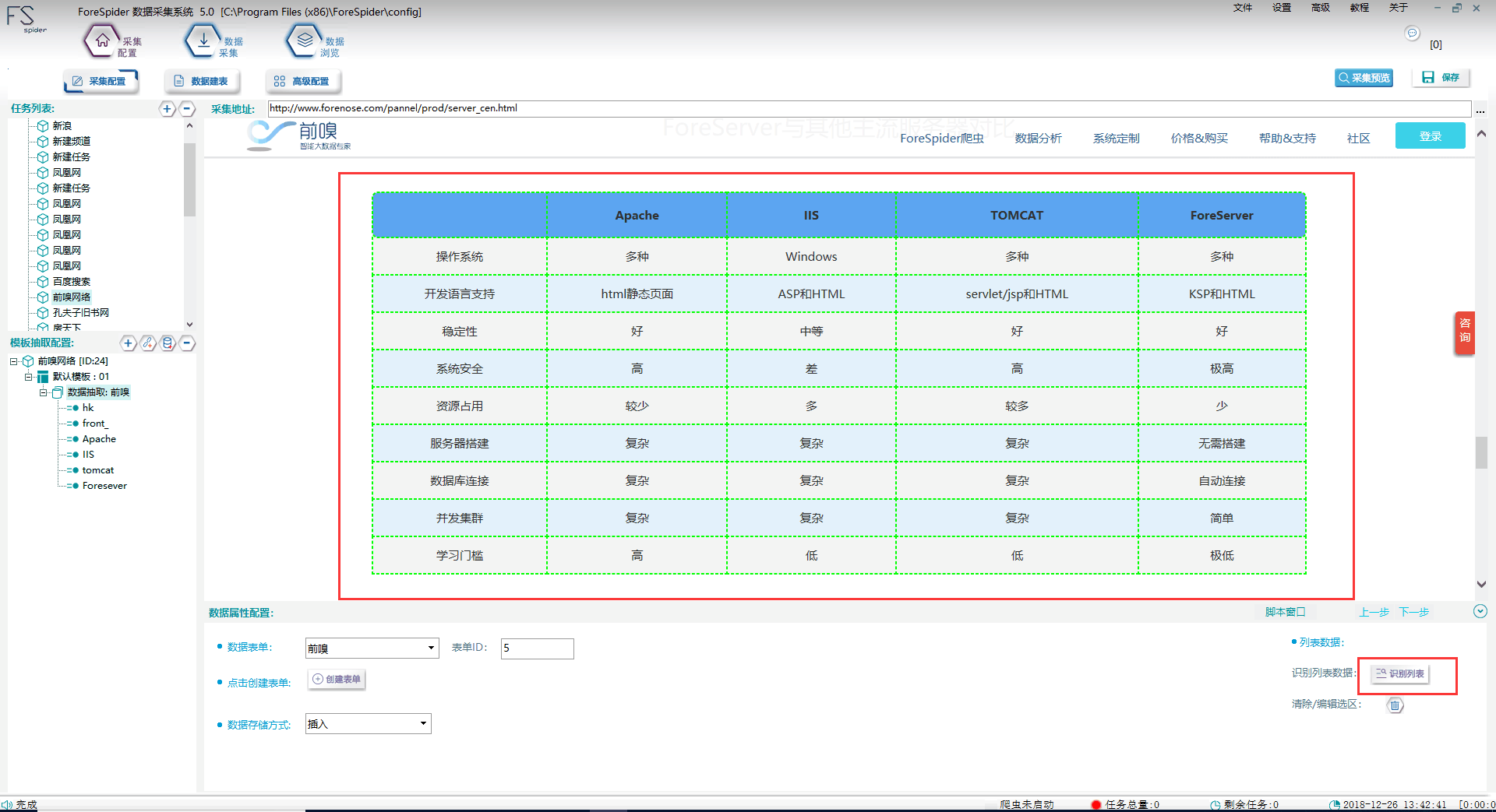 识别列表用于存储表格/列表的数据,将表格/列表的不同列对应存入不同字段,表格/列表的不同行分别存储为数据表的多条记录。以前嗅官网Web服务器(http://www.forenose.com/pannel/prod/server_cen.html) 为例。