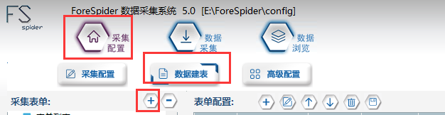 方法三:自由建表,点击“采集配置”-“数据建表”,点击采“采集表单”后面的。(>>详见自由建表)