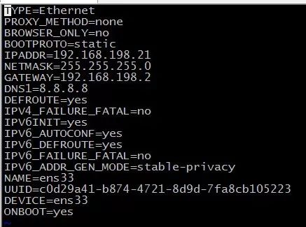 添加内容:IPADDR=192.168.198.21 //ip地址