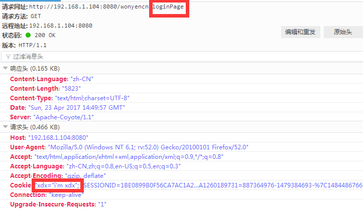 也就是通过这次请求,我们把xdx=i'm xdx 这个cookie通过response放进了浏览器。