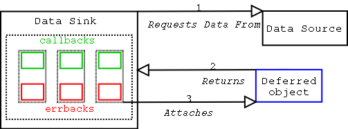 在 twisted 内部,使用 Deferred 对象管理回调序列。当异步请求结果返回时,使用 Deferred 对象调用回调序列中的函数。