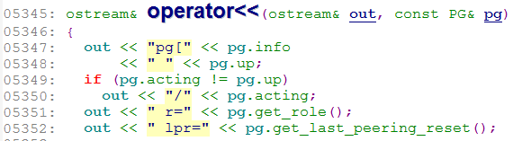 问题在于步骤c。在c中存在两个集合,一个是根据crush算出的集合[0,2,1],另一个是临时的集合 [2,1,0]。需要确定的是acting与up分别对应的是哪一个集合? 从新来看下代码即可知晓, pg状态打印代码如下: