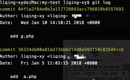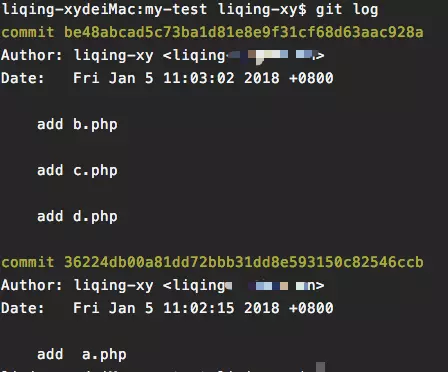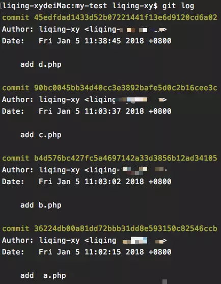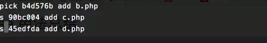 现在我们在测试分支上添加了四次提交,我们的目标是把最后三个提交合并为一个提交: