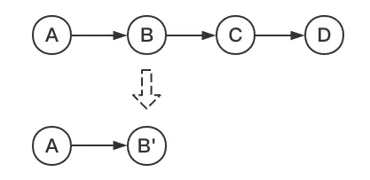 当我们在本地仓库中提交了多次,在我们把本地提交push到公共仓库中之前,为了让提交记录更简洁明了,我们希望把如下分支B、C、D三个提交记录合并为一个完整的提交,然后再push到公共仓库。
