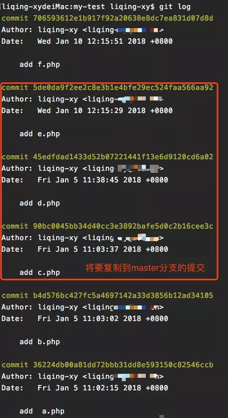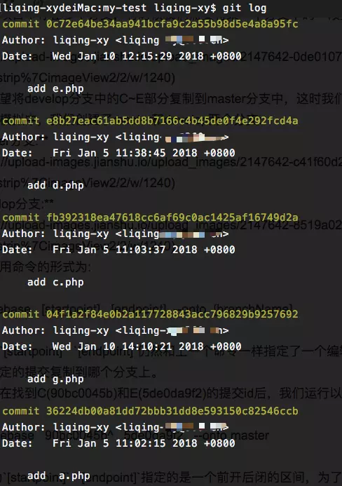 其中,[startpoint] [endpoint]仍然和上一个命令一样指定了一个编辑区间(前开后闭),--onto的意思是要将该指定的提交复制到哪个分支上。