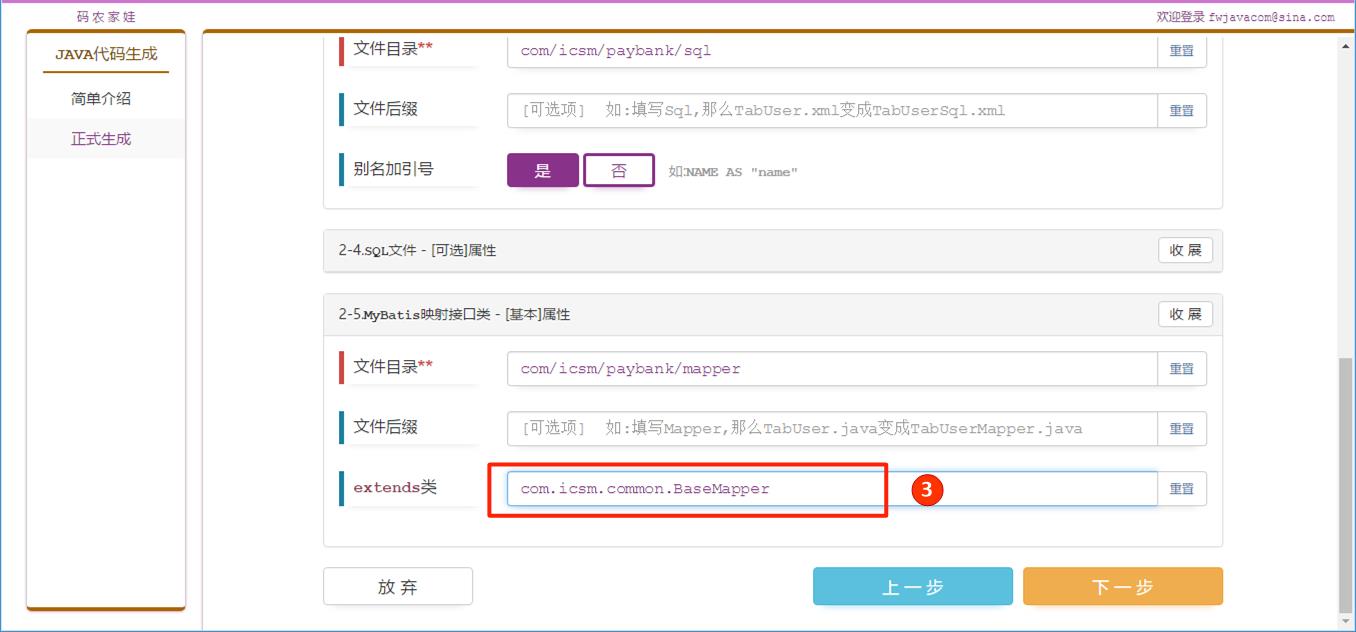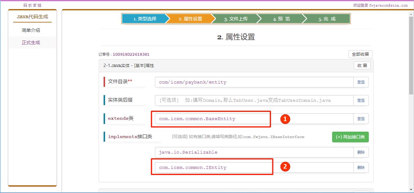 图标1) 在生成的所有Java实体中 , 继承公司提供的com.icsm.common.BaseEntity类