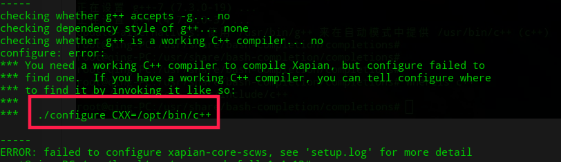 ERROR: failed to configure xapian-core-scws, see 'setup.log' for more detail