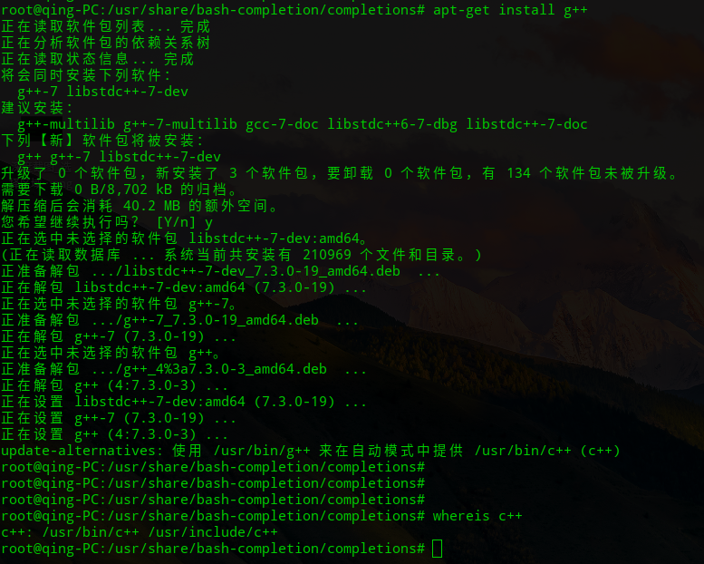 命令行这里有的包下载失败,可以复制链接,通过浏览器下载,然后复制到:/var/cache/apt/archives 目录下。然后再重新执行命令:apt-get install g++