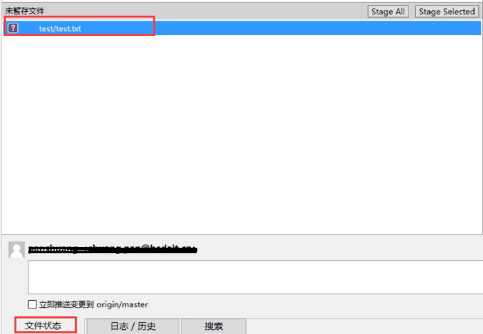 之前已经介绍过未进行版本控制的或者受版本控制的文件,在sourcetree的“文件状态” 标签中查找,如图所示: