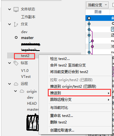 在sourcetree右侧内容中的分支列表中,选中创建的分支,右键提交,如图所示: