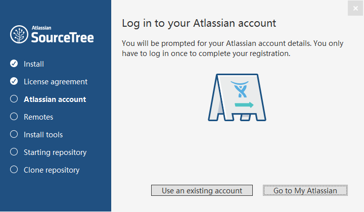 点击“install”,安装完成后,打开sourcetree,点击“user an existing account”,如图