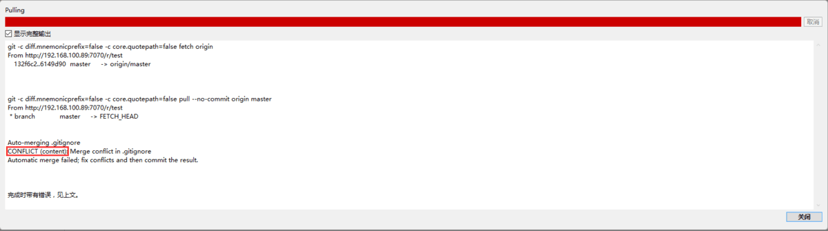 2、右侧列表中出现冲突的内容。