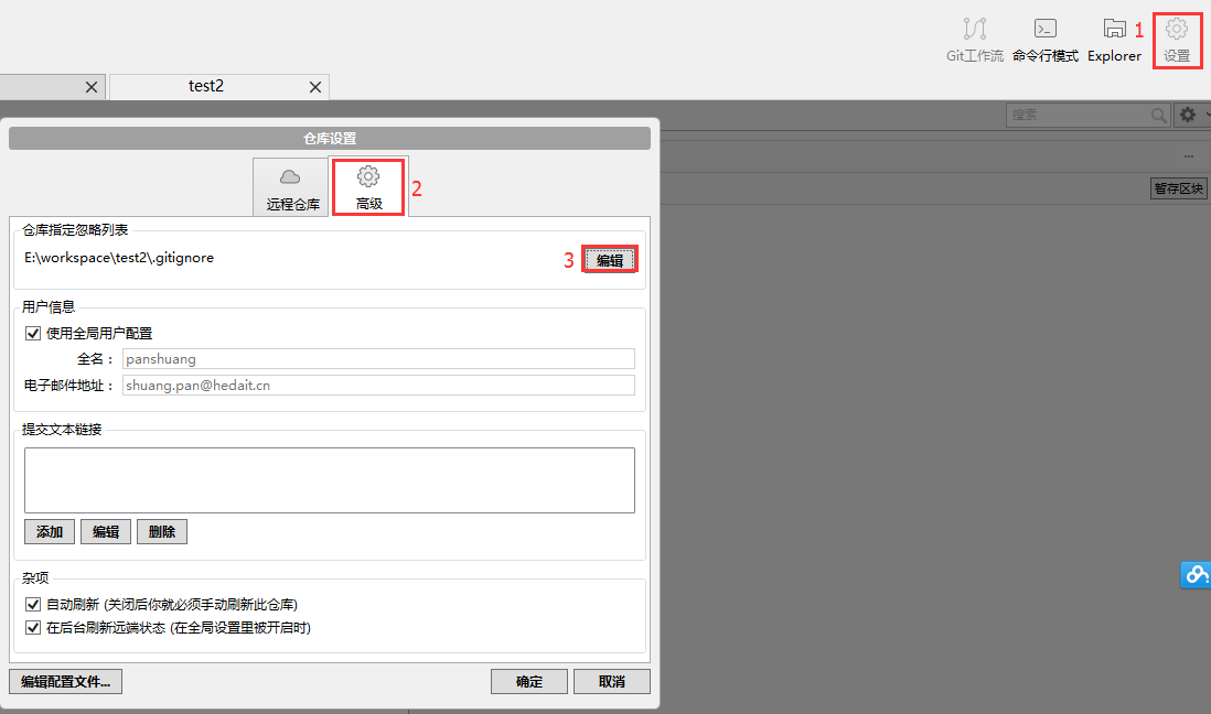 使用sourcetree添加忽略文件的方法: