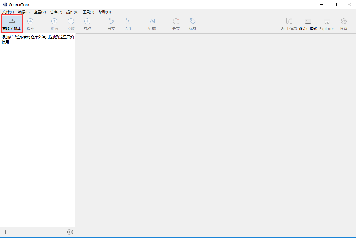 此时进入到sourcetree的主界面,现在就可以使用sourcetree啦。