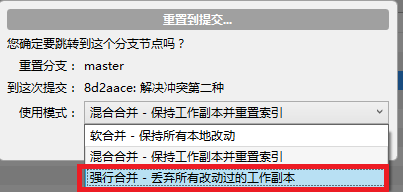 原则上,代码推送之前要保证本地的代码可运行,不要将不可运行或者有问题的代码推送到服务器上,如果由于误操作,将代码推送到了远程,想重新修改上传代码,此时,需要将版本进行回退,回退方法如图: