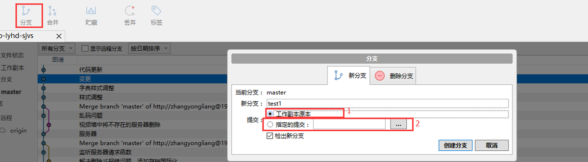 3、点击“创建分支”