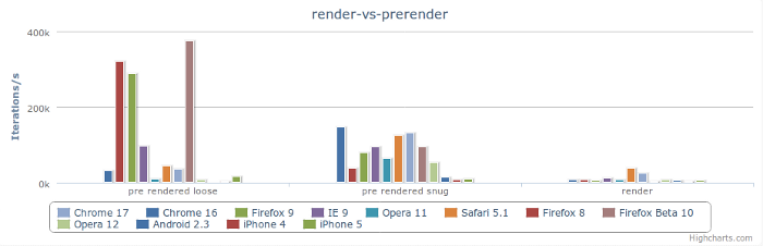 当渲染操作(例如上例中的drawmario)开销很大时该方法将非常有效。其中很耗资源的文本渲染操作就是一个很好的例子。从下表你可以看到利用预渲染操作所带来的强烈的性能提升。(来自于jsperf):