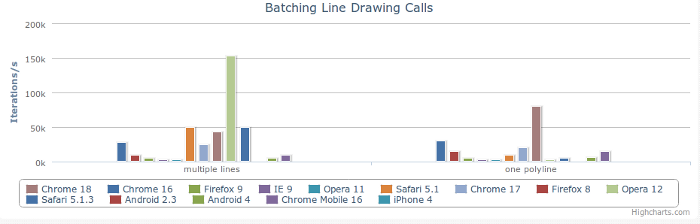 然而,需要注意的是,对于canvas来说存在一个重要的例外情况:若欲绘制的对象的部件中含有小的边界框(例如,垂直的线条或者水平的线条),那么单独的渲染这些线条或许会更加有效(jsperf):