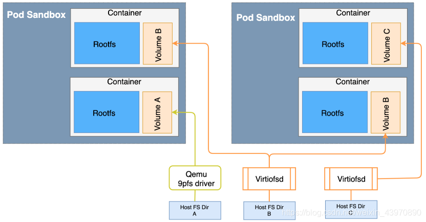 安全沙箱容器存储方案涉及到两方面,分别是 RootFS 和 Volume。