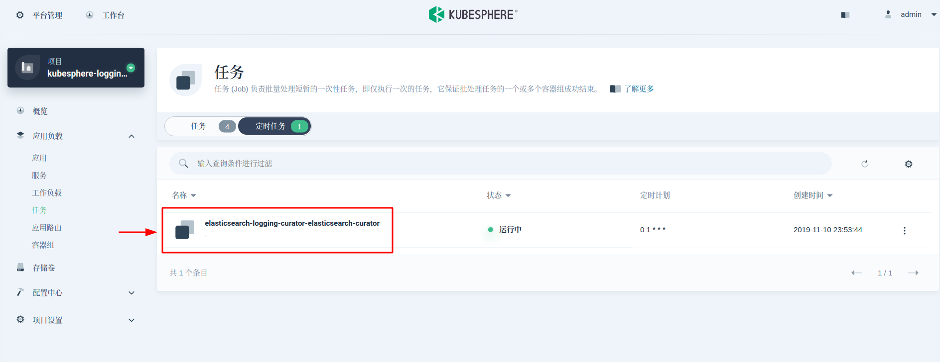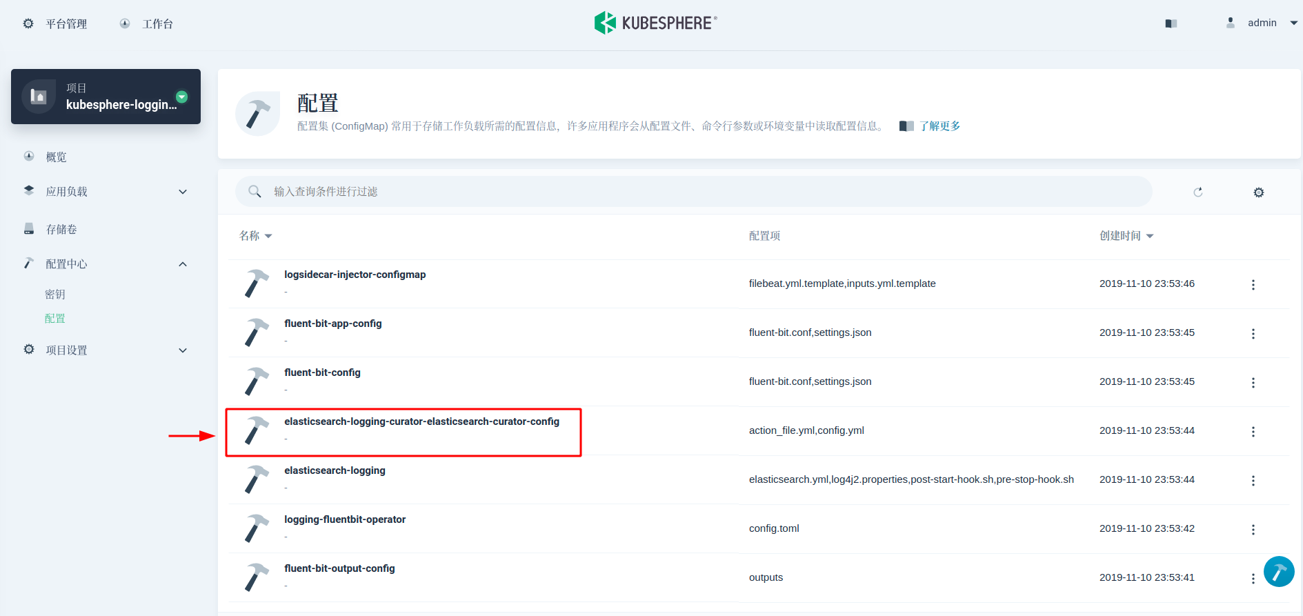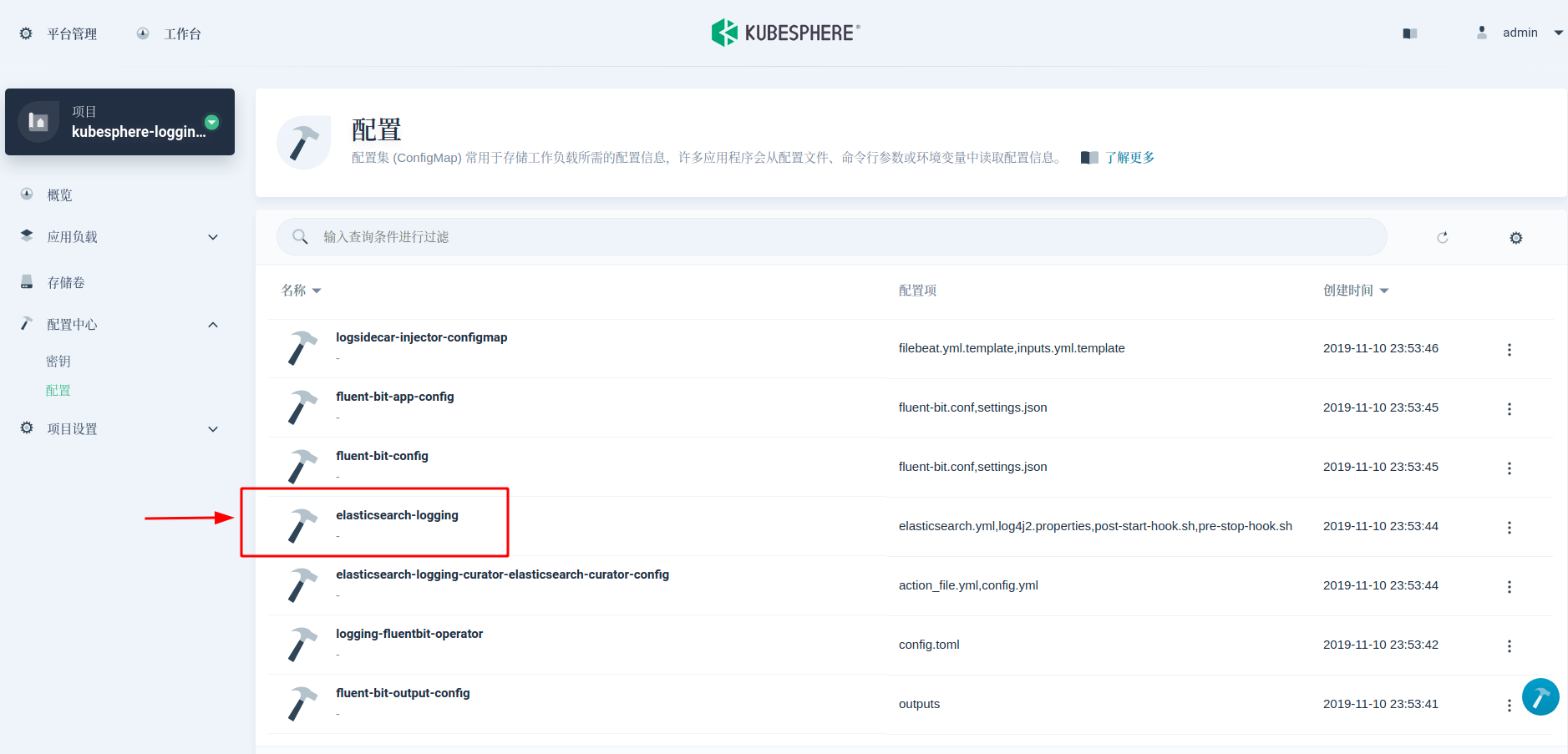 namespace: kubesphere-logging-system