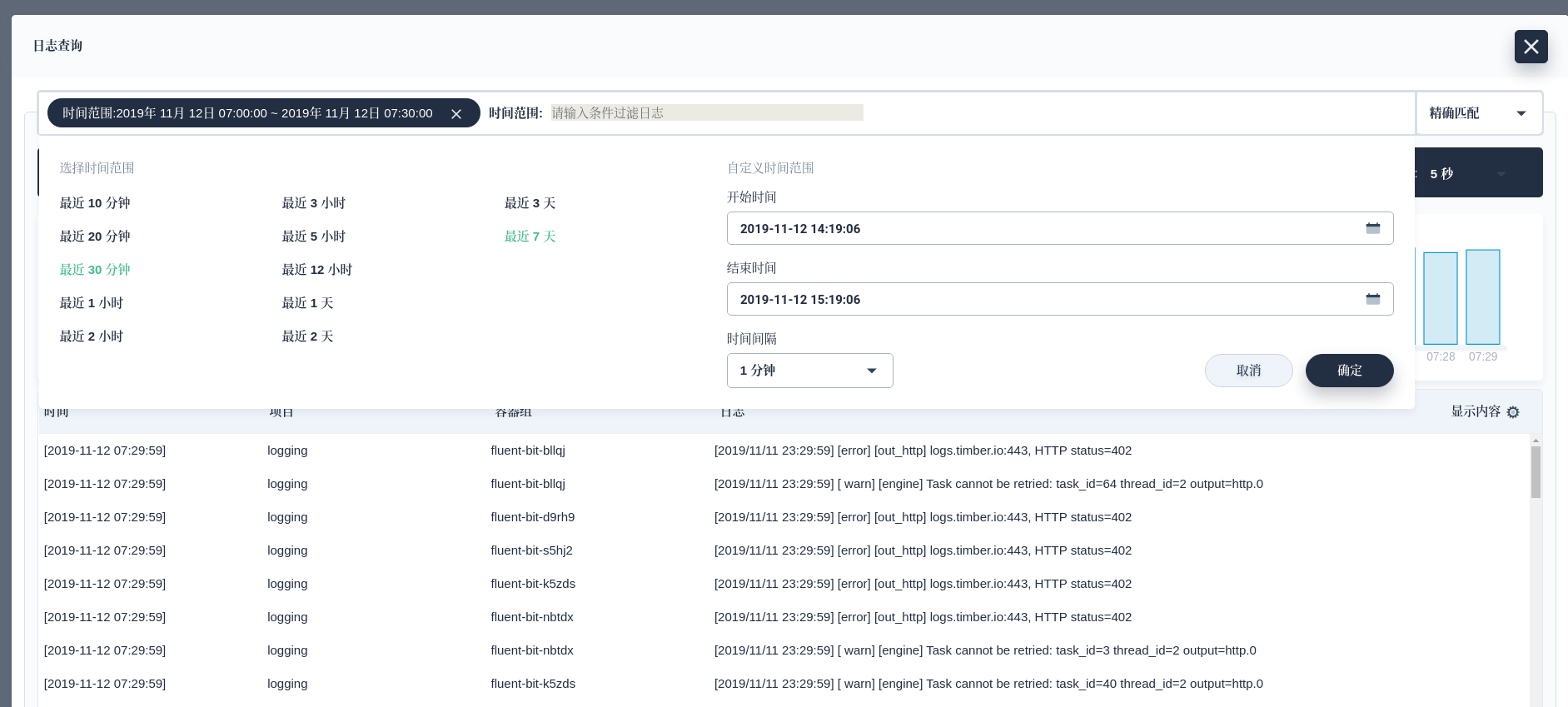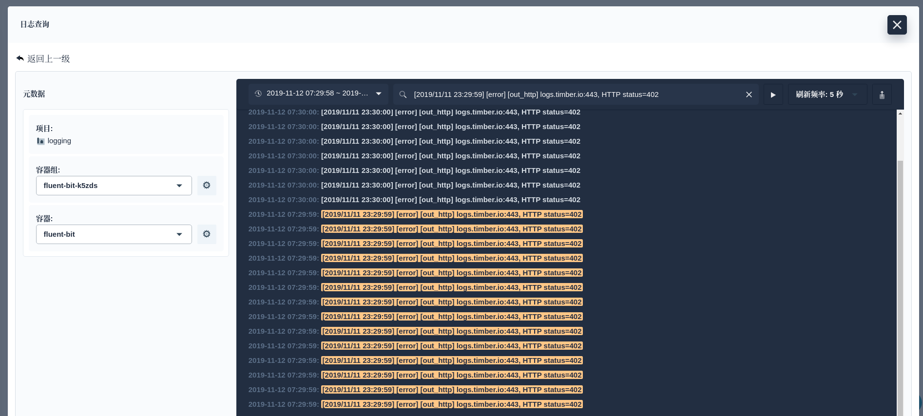 根据日志量的大小,需要等到的时间几分钟不等。我们就可以通过 KubeSphere 日志 Dashboard 查看日志了。
